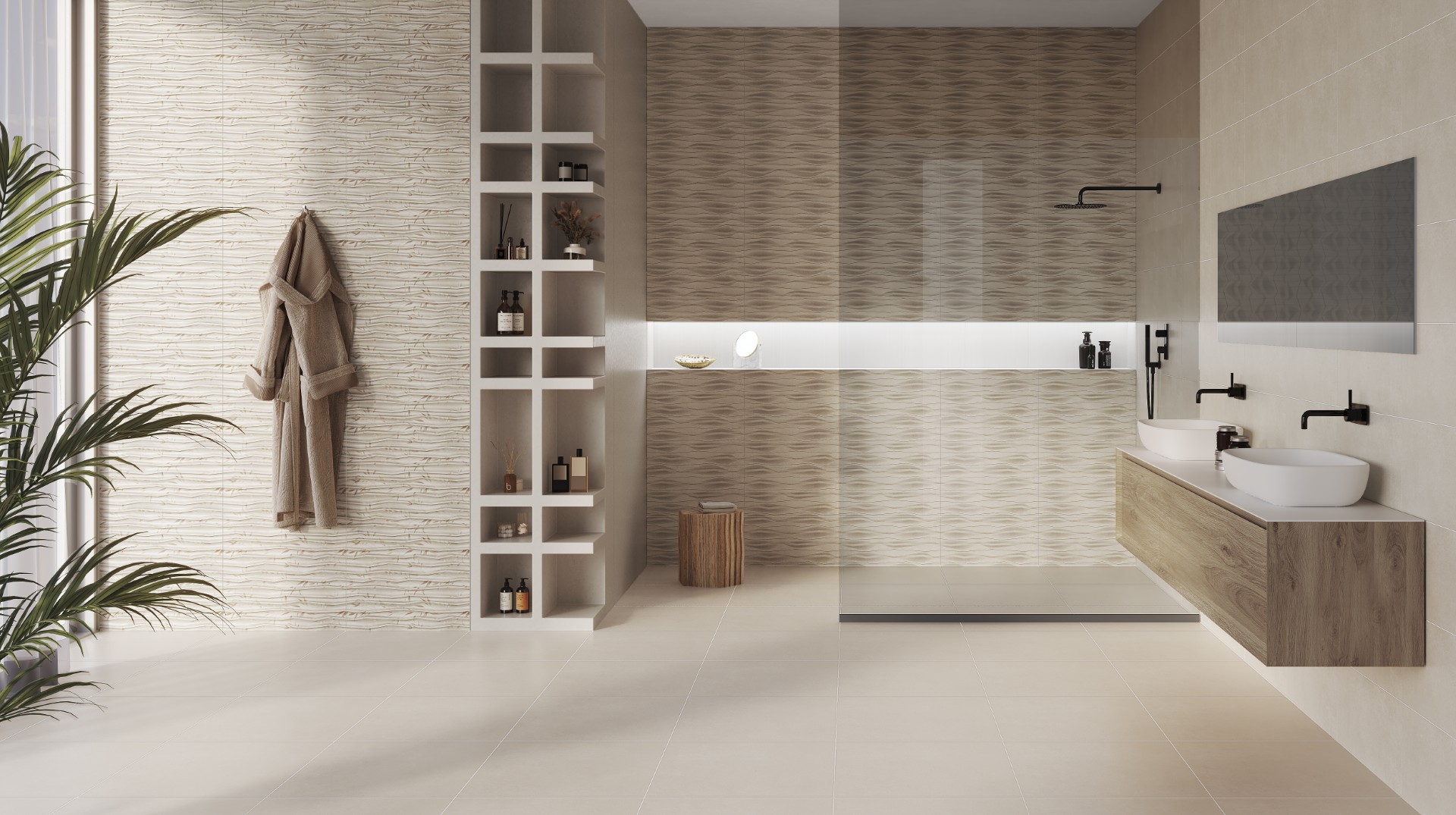 Choose in a tap the surface you desire to design floors and walls. Try now our room configurator in cleopatraceramics.store!