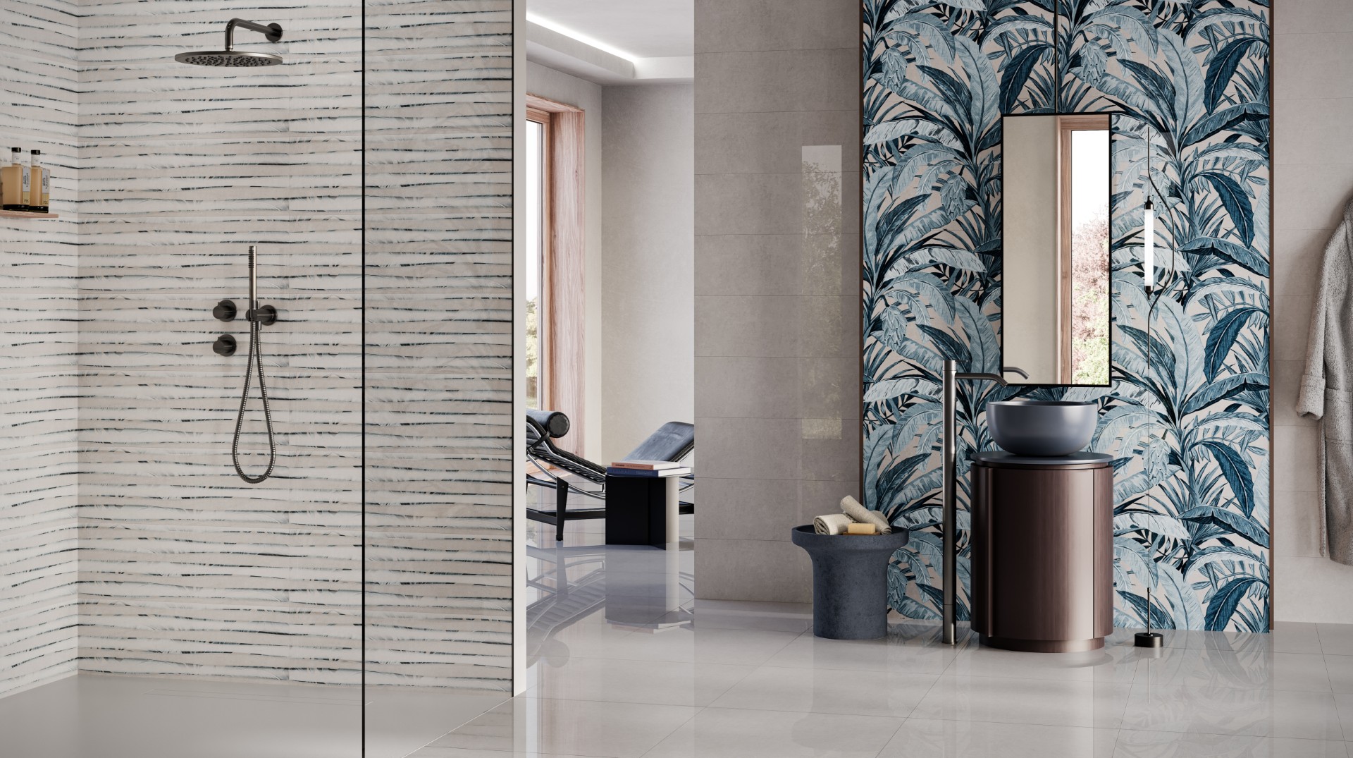 Choose in a tap the surface you desire to design floors and walls. Try now our room configurator in cleopatraceramics.store!
